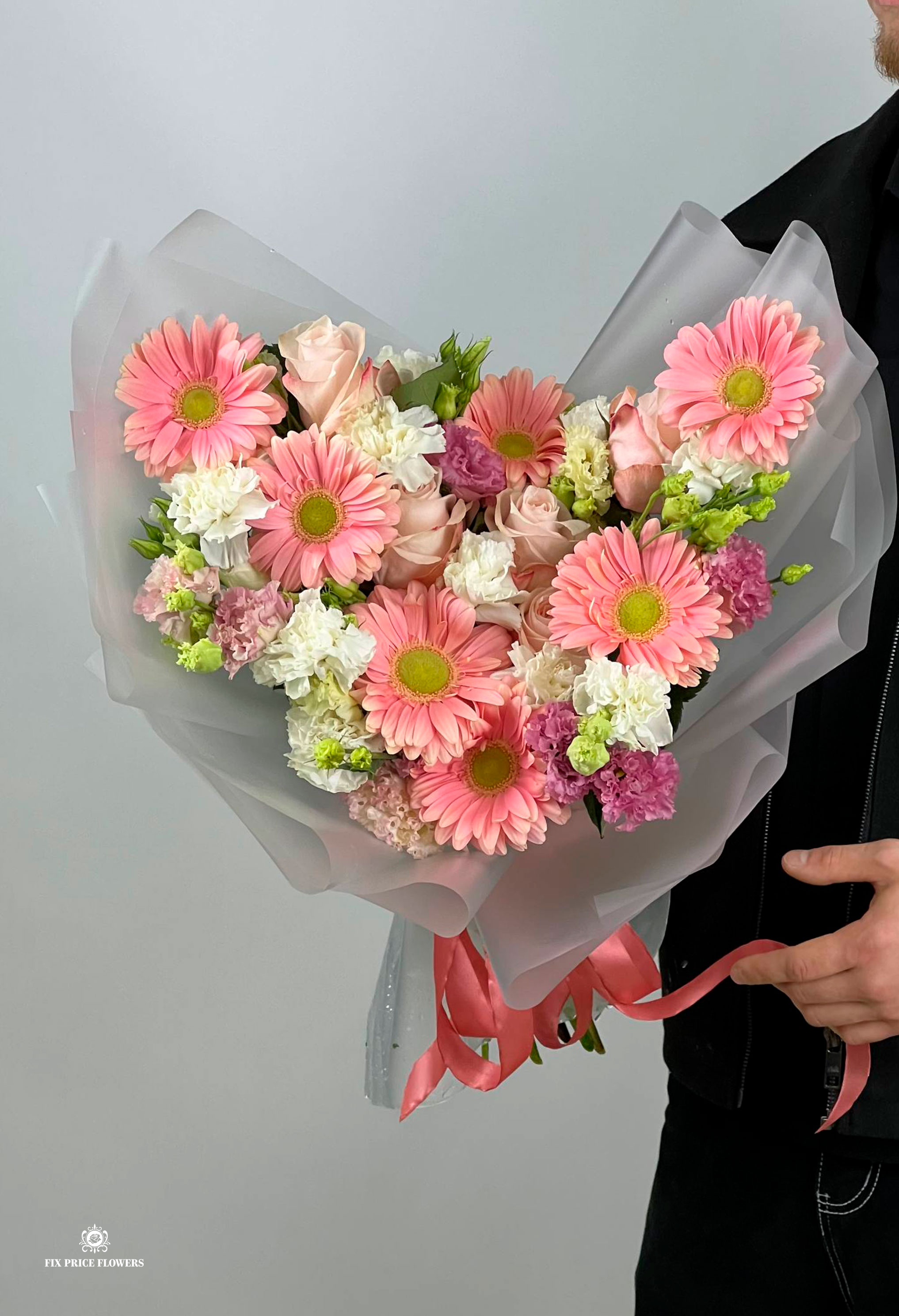 Букет из гербер, роз и лизиантусов - 26 шт
