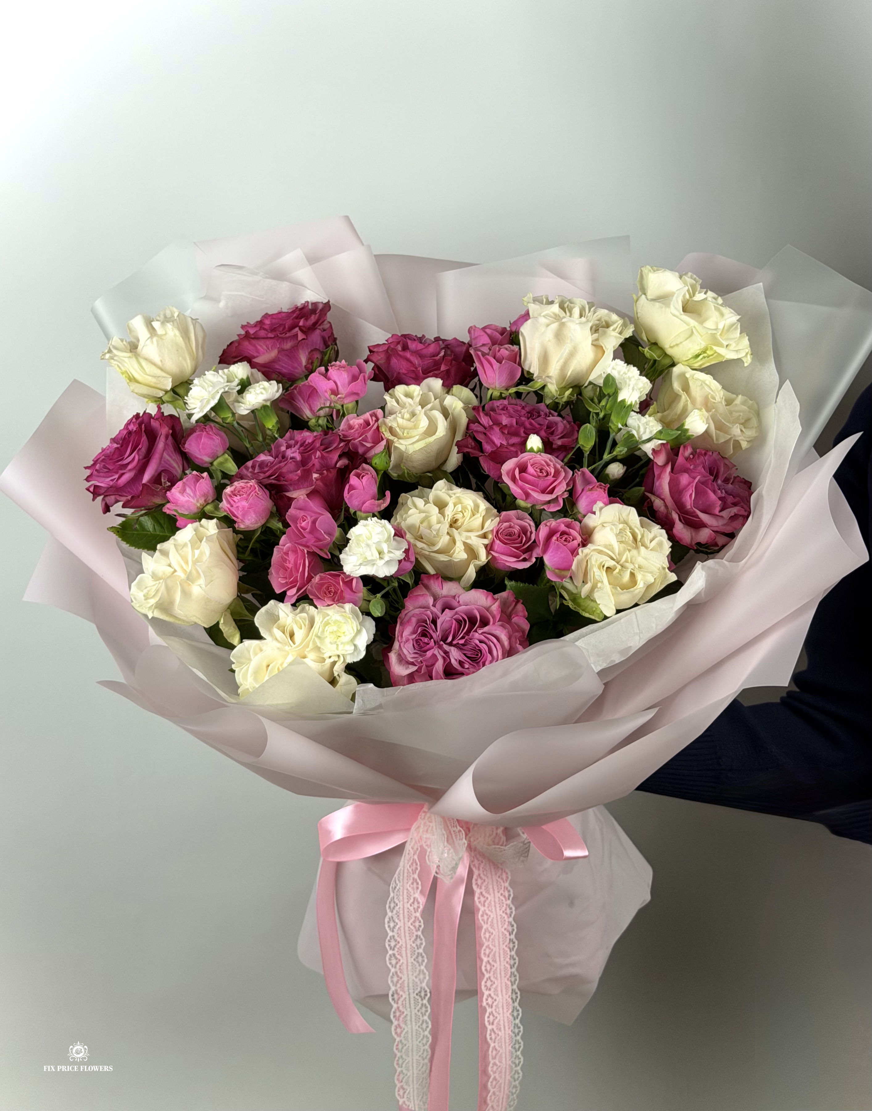!Мы всегда стараемся собирать ваши заказы из самых свежих цветов, поэтому сорта цветов и цветовая гамма в букетах и композициях могут отличаться от фотографий размещённых на сайте. Некоторых сортов может не быть в наличии и состав букета может незначительно изменится. Мы обязательно согласуем замену того или иного сорта с вами если в этом будет необходимость и вы указали это в комментариях.