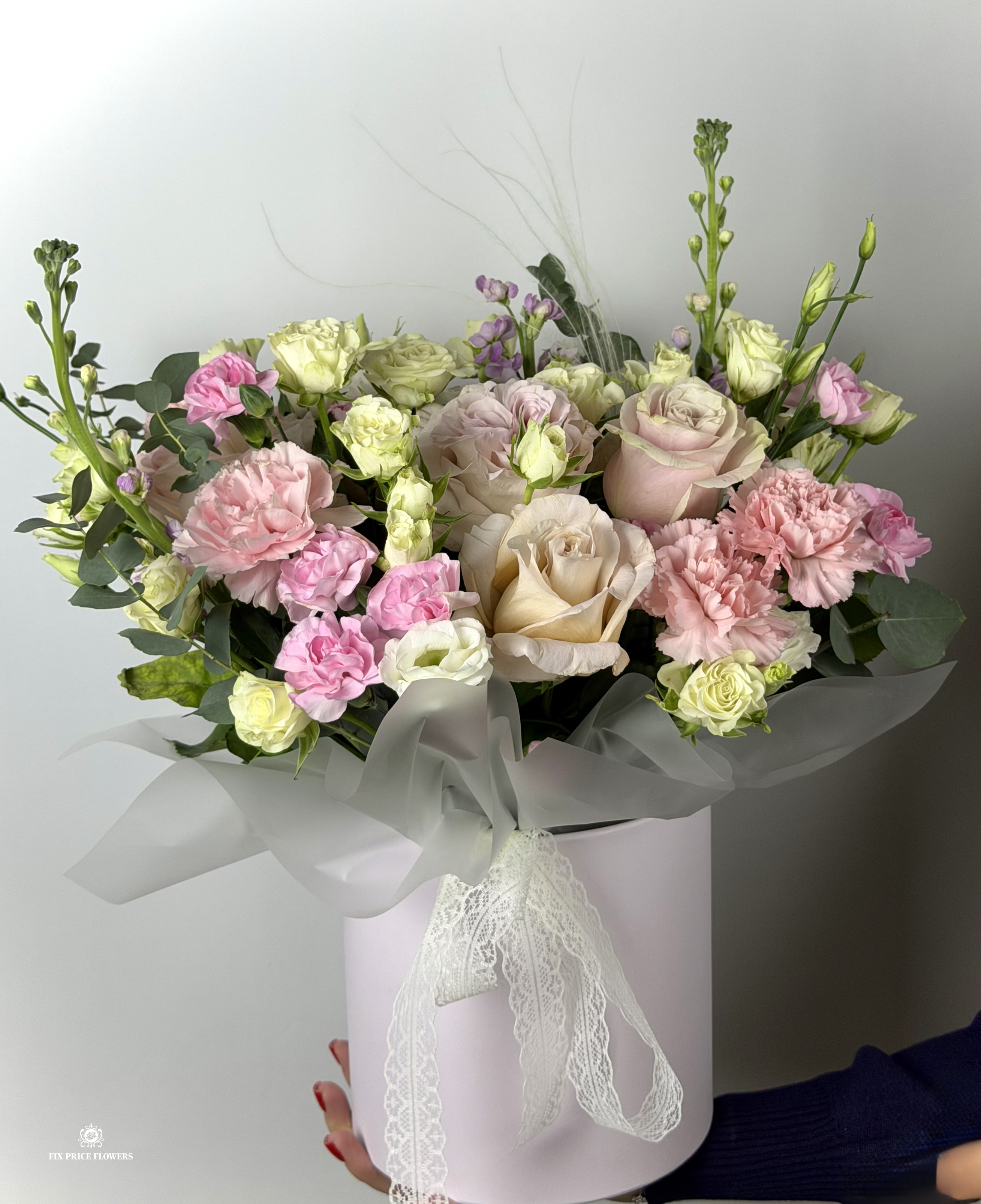 Композиция из роз, маттиол и гвоздик - 28 шт в Нижнем Новгороде